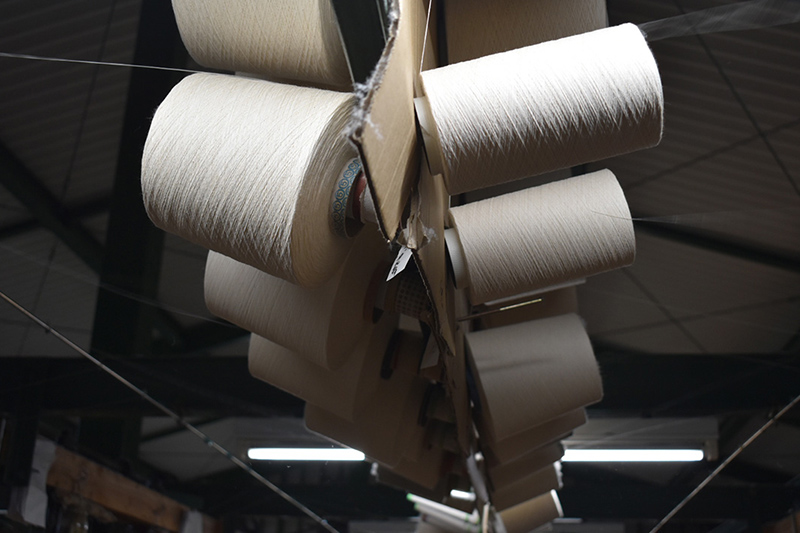今や世界でも希少になった吊り編み機。和田メリヤスさんは編み機の動力を太陽エネルギーで補います。少しの湿度や環境の変化でも調整が必要な程デリケートな機械、それを扱えるのは、高い技術を持った熟練された職人のみ。