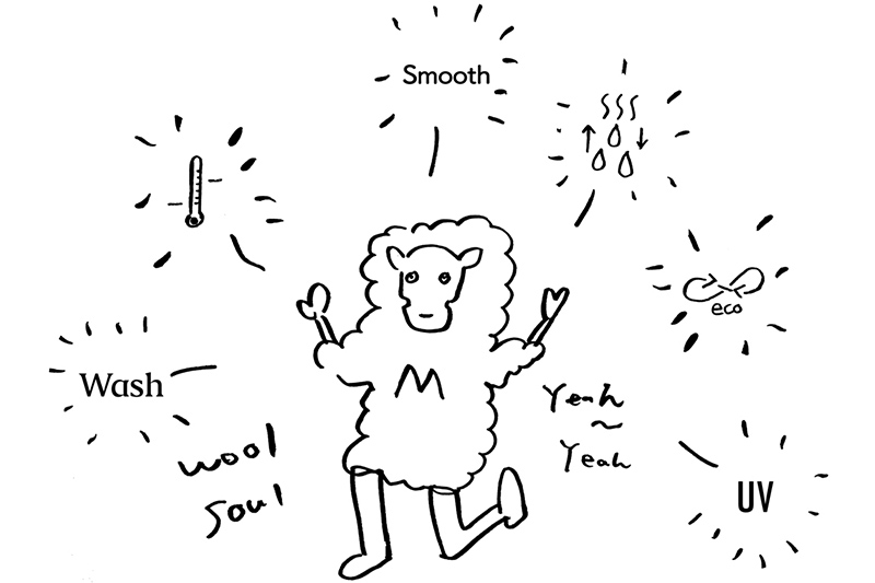 このウロコを完全に除去することなくカバーリングする「酵素系防縮加工」を施し、ウール本来の特性や風合いを保ちつつ家庭洗濯を可能にしました。 塩素を使用しない環境に優しい方法です。